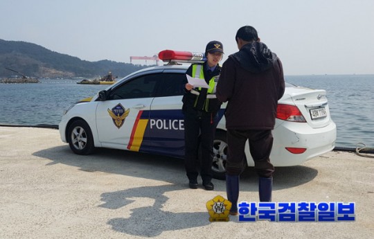 <마비성 패류독소 검출 따른 주의 홍보하고있다. 사진=통영해양경찰서 제공>