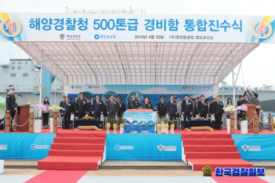 [한국검찰일보 오상택 기자]=해양경찰청(청장 조현배)은 30일 오후 ㈜한진중공업에서 500톤급 경비함정 5척에 대한 통합 진수식을 개최했다고 밝혔다.