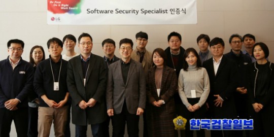 회 소프트웨어 보안전문가 인증식에서 기념촬영을 하고 있다. 사진=LG전자 제공>