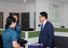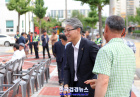 지구대 경찰관계자와 이야기하는 김춘진 민주당 전북도당위원장 |