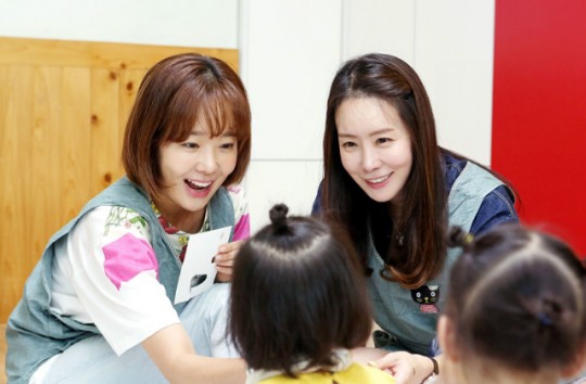 <봉사활동을 펼치고 기부금과 물품을 전달한 배우 김정은과 소유진 자료=대한사회복지회 의정부영아원 제공>