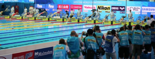 2019광주세계수영선수권대회 남부대 메인풀장에서 선수들이 출발하고 있다. 사진=오상택 기자