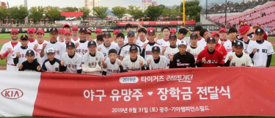 KIA와 기아자동차는 지난해 ‘타이거즈 러브투게더’를 통해 적립한 기금(5억3000만원) 중 일부인 1억700만원을 29명의 야구 유망주들에게 장학금으로 전달해 꿈과 희망을 심어줬다.