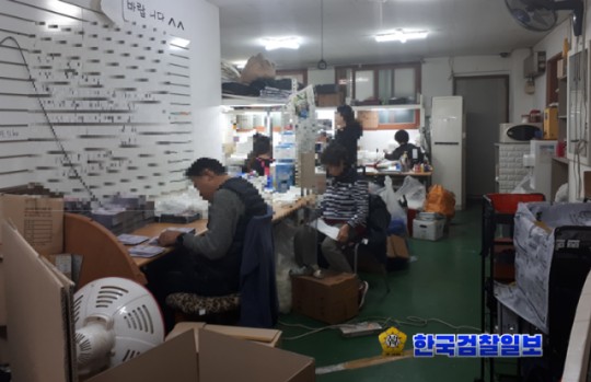 <신고하지않은시설에서 미세먼지마스크를 제조하는 모습 사진=경기도 특별사법경찰당 제공>