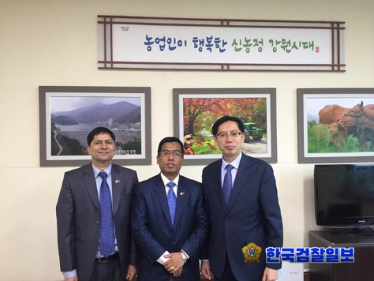 [한국검찰일보 홍기한 기자]=강원도 박재복 농정국장은 4.18.(목) 도청 국장실에서 주한 네팔대사(키런샤키아)를 만나 양국의 농업 분야 우호교류 방안을 협의했다.