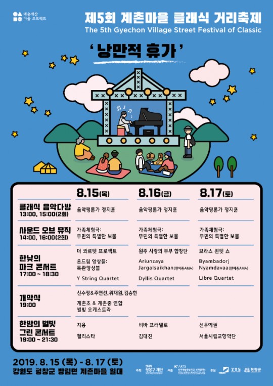 지용, 신수정, 비바 프라텔로, 선우예권, 서울시립교향악단, 음악평론가 정지훈, 더 콰르텟 프로젝트, 온드림 앙상블 등 화려한 클래식 연주가들이 출연하며, 계촌 클래식 거리축제를 찾는 많은 관광객들에게 행복한 여름날의 추억을 안겨 줄 것으로 기대된다.