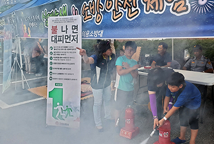 지역주민 400여명이 참여한 이날 행사는 소방서 직원과 간성 남ㆍ여 의용소방대원 20여명이 소방안전체험 부스를 운영하며 ▲주택용 소방시설 설치 홍보 ▲불 나면 대피 먼저 홍보 ▲연기소화기 및 심폐소생술 체험 등으로 진행됐다.