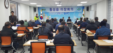 2019. 11. 15. 10:30경 횡성군 횡성읍사무소에서 개최한 횡성군 이장 협의회(회장 장대근) 회의장을 찾아 각 읍·면 협의회장 40여 명을 상대로 ‘안전속도 5030’ 시행 취지를 설명하고 관련 홍보물품을 배부하며 군민들의 많은 참여와 협조를 당부 드린다고 밝혔다